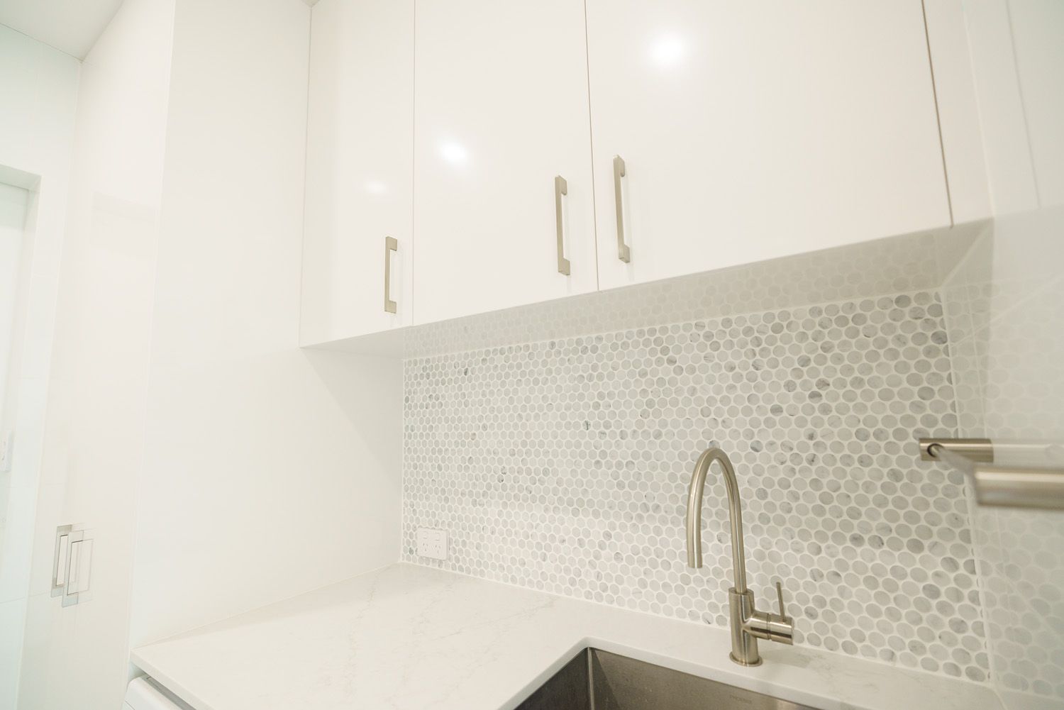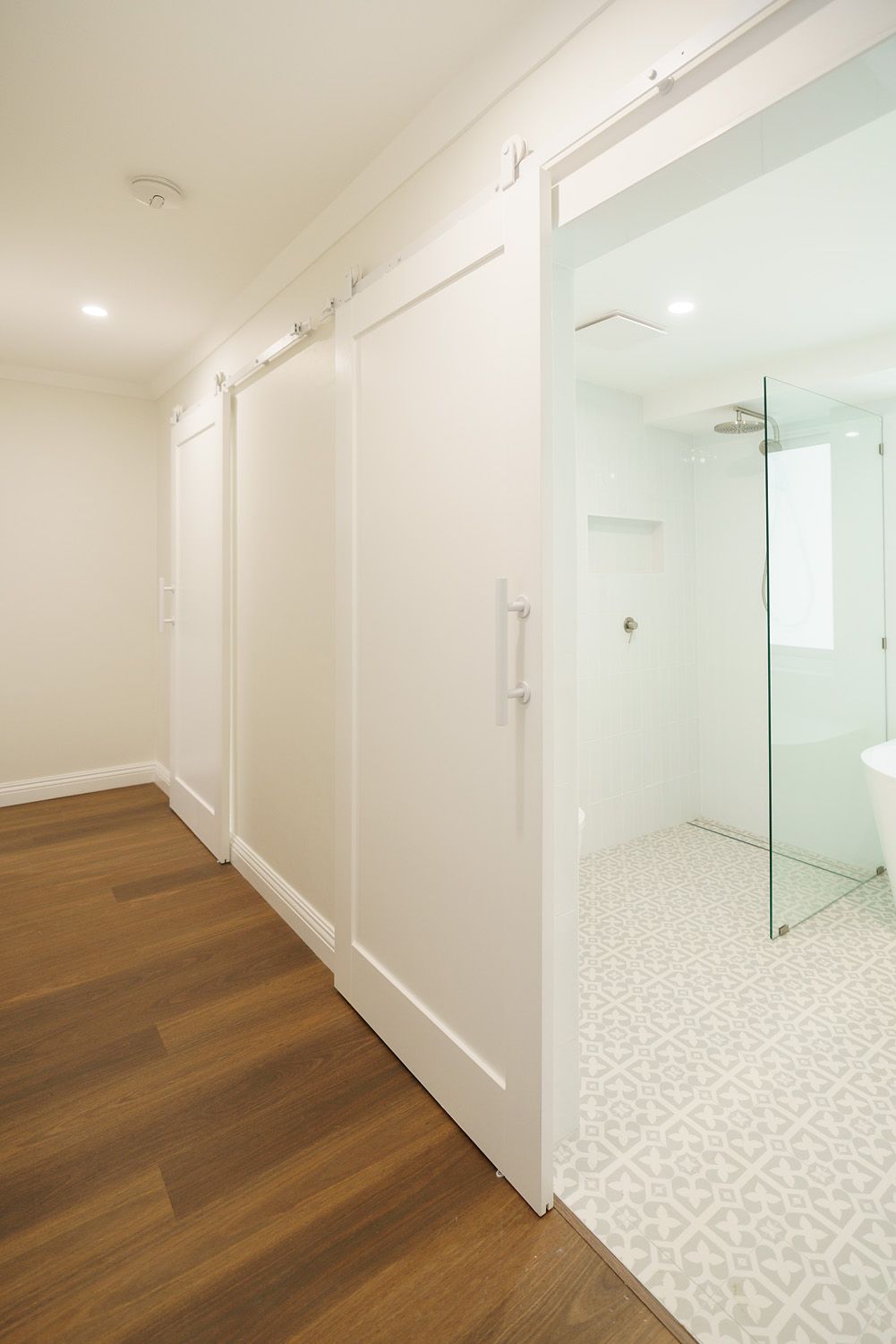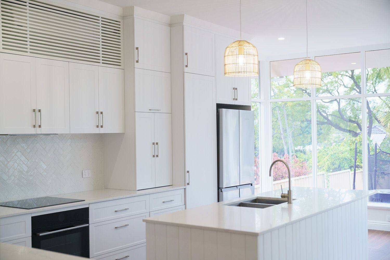 This renovation transformed tired flooring, wall finishes and cabinet work into an amazingly warm and contemporary space.