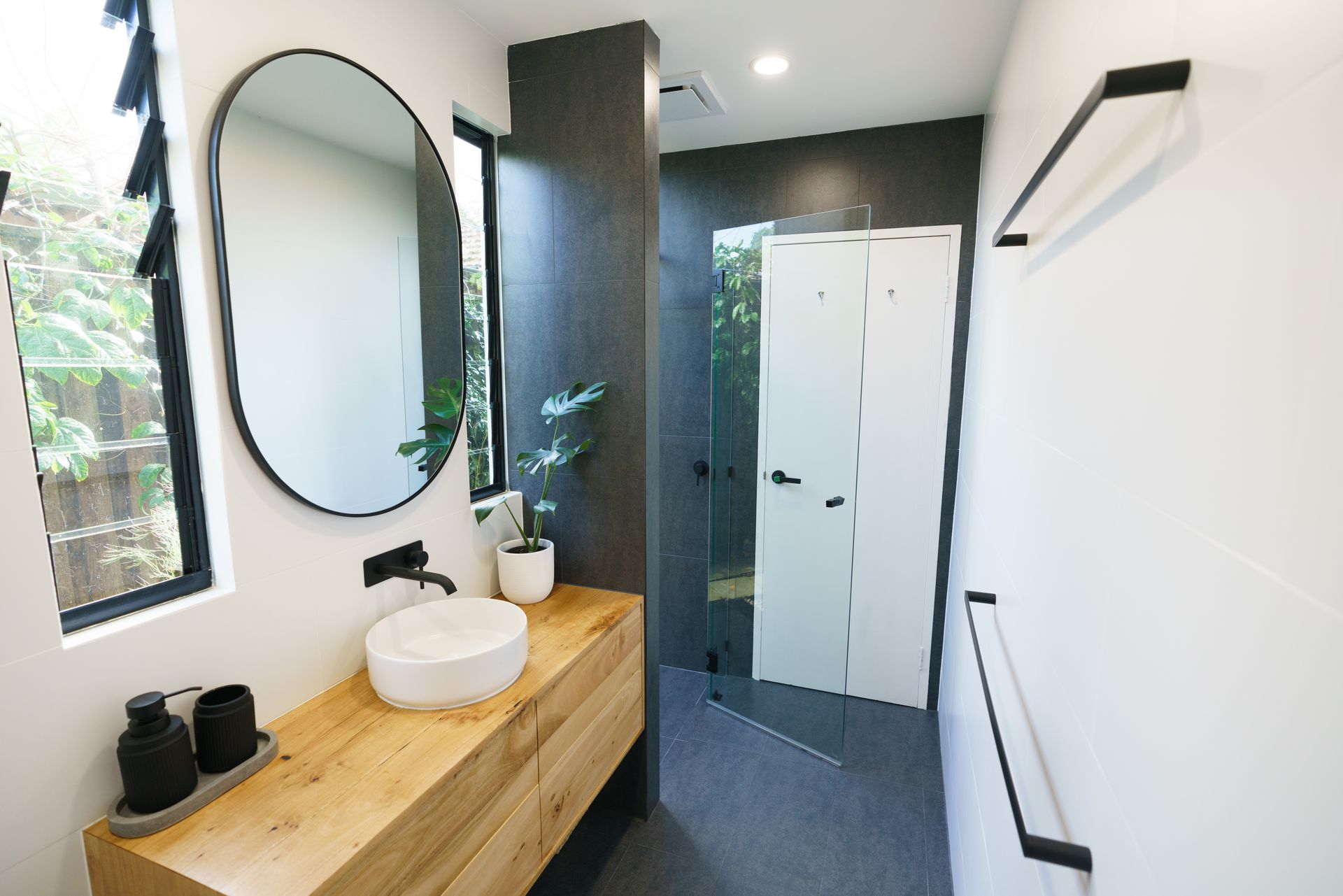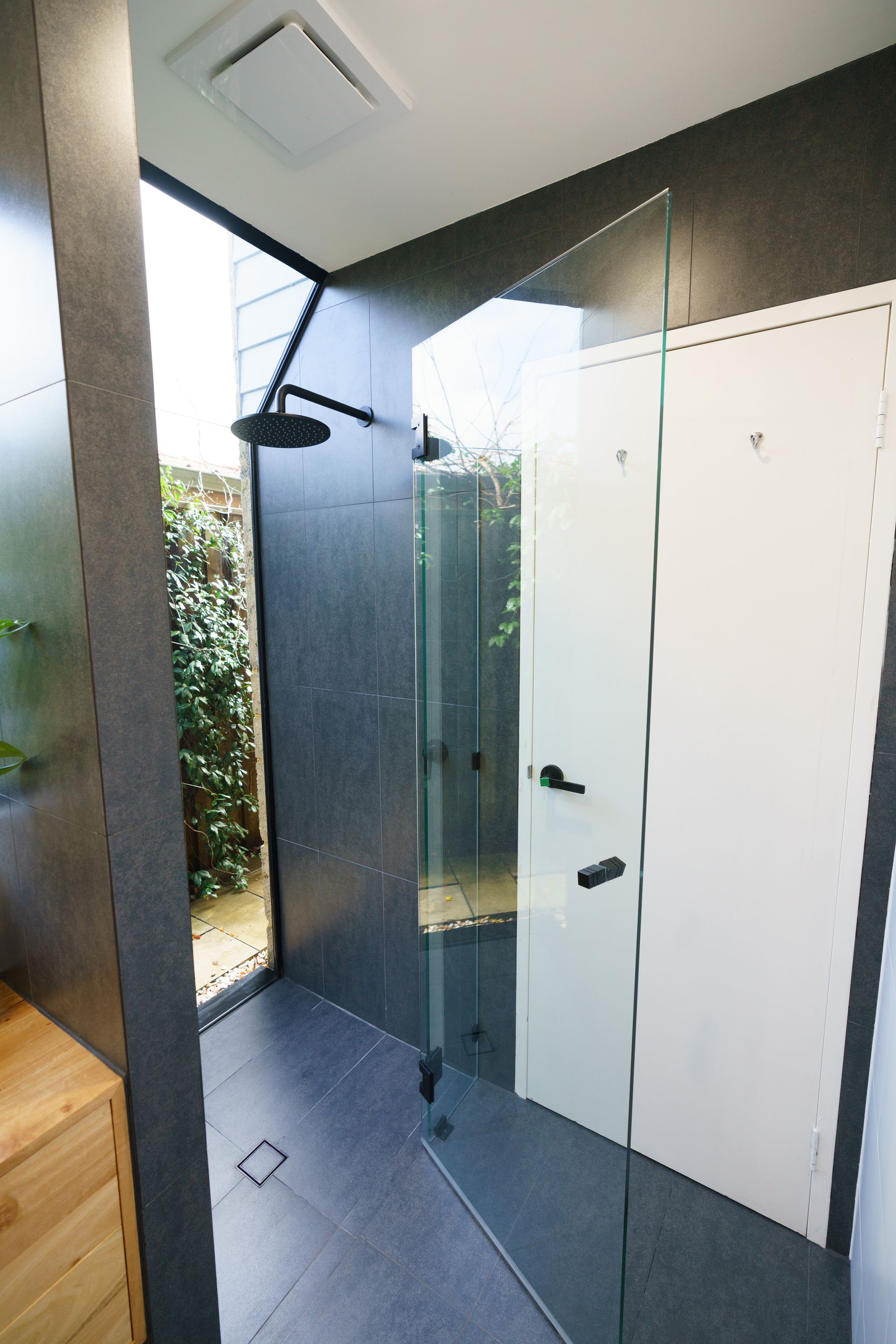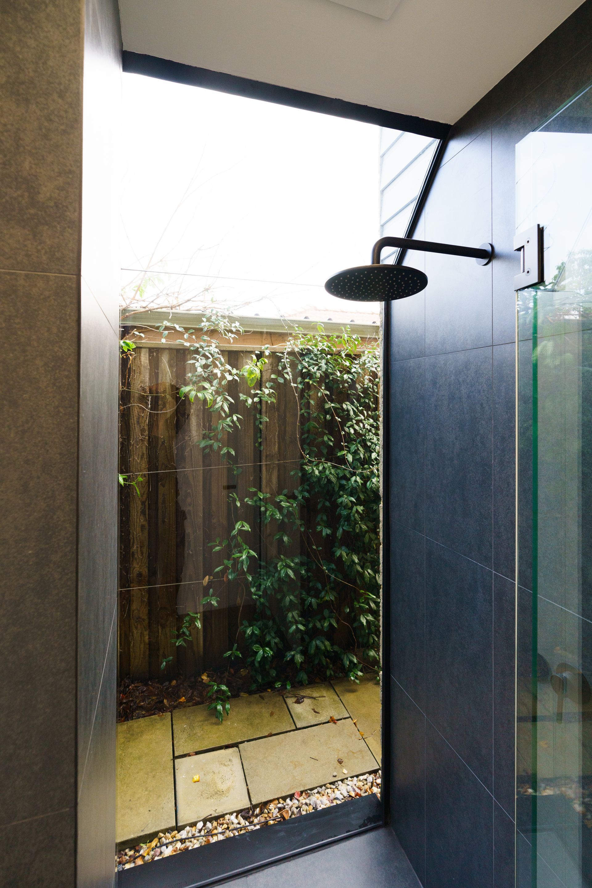 We love how the glazing in the design almost make this seem like an outdoor shower.