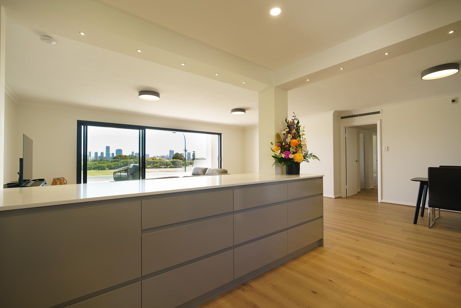 This 70's apartment required a complete makeover. Bringing the view to the living spaces and kitchen was a priority of the owners.