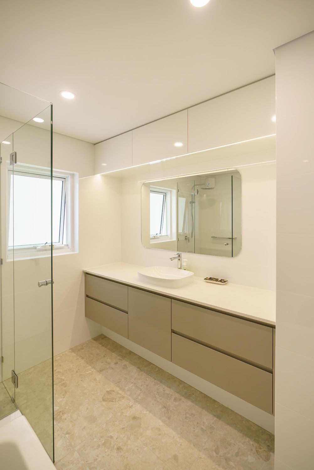All wet areas were renewed with a refreshed layout, new tiling, fixtures and fittings.