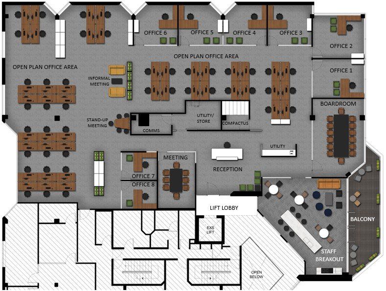 The brief for this new fitout was a blend of office and open plan workspace with modern staff facilities.