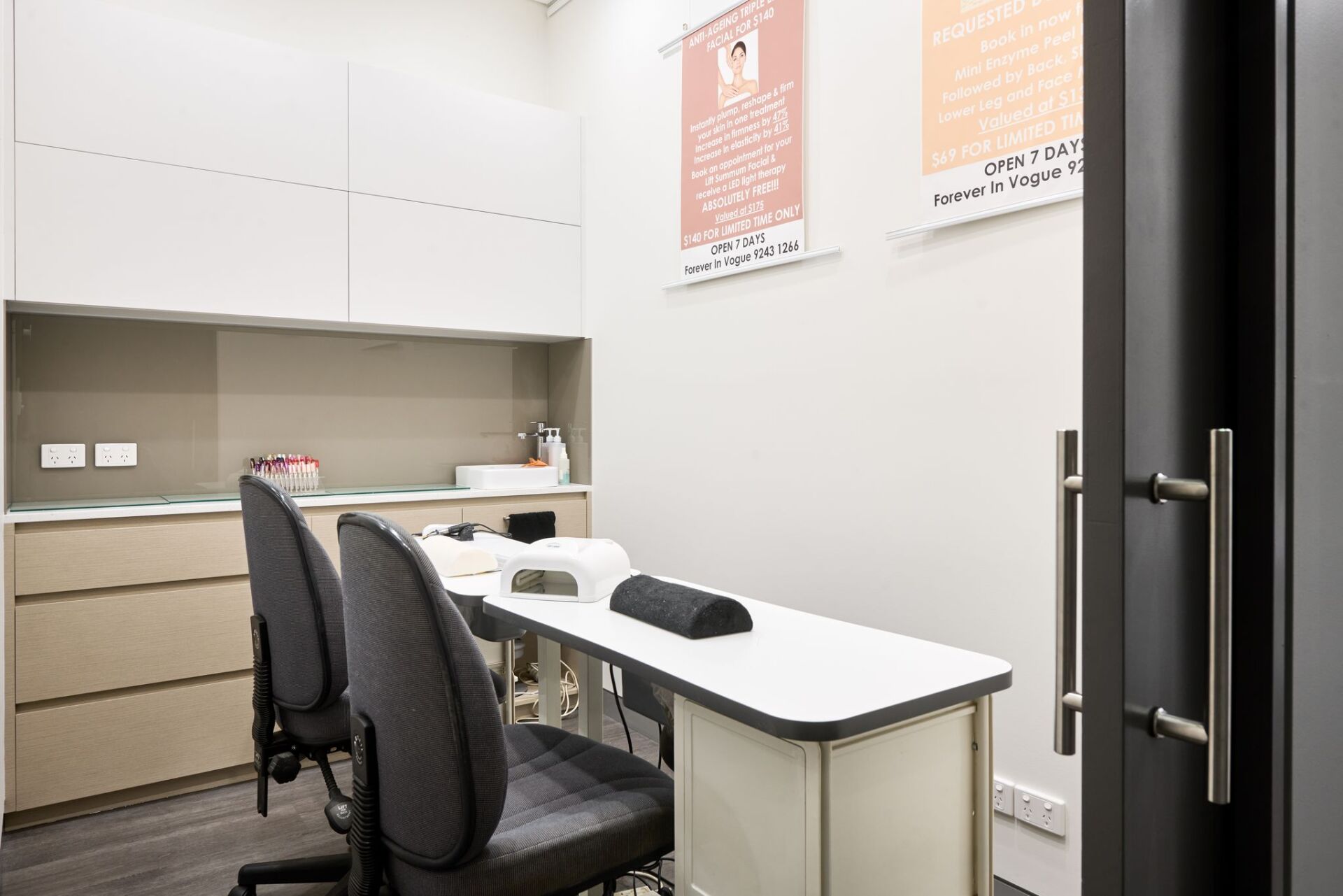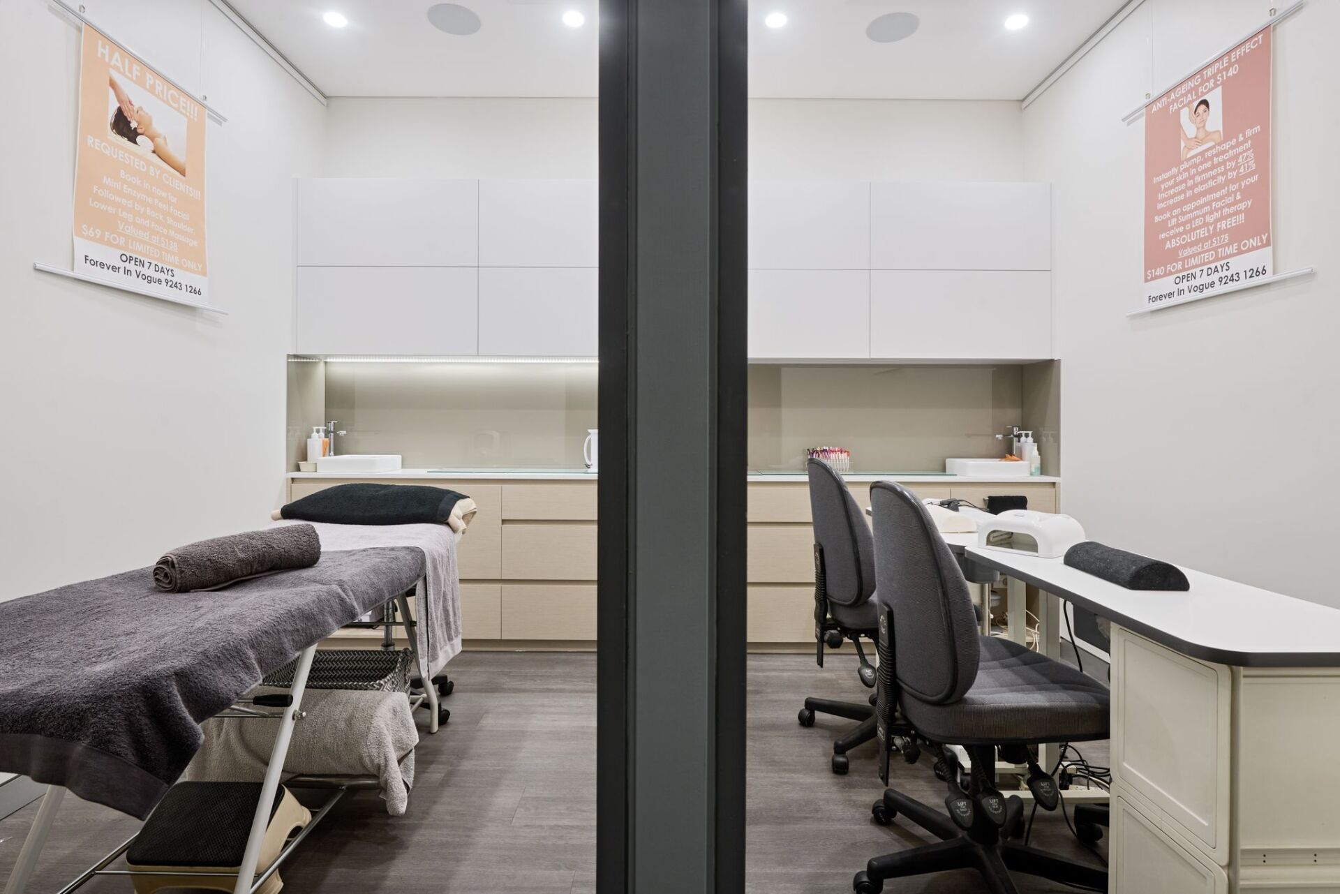 Brilliant white and classic black are a timeless feature throughout the tenancy, as is ample lighting and storage.