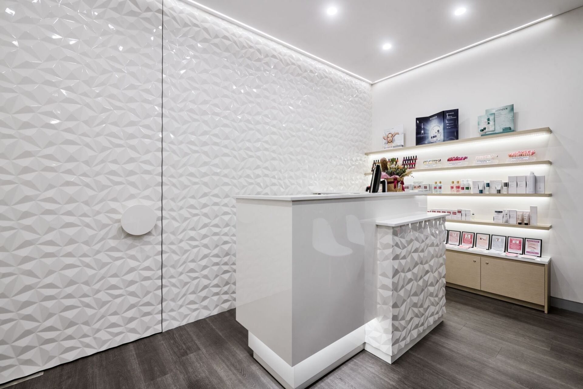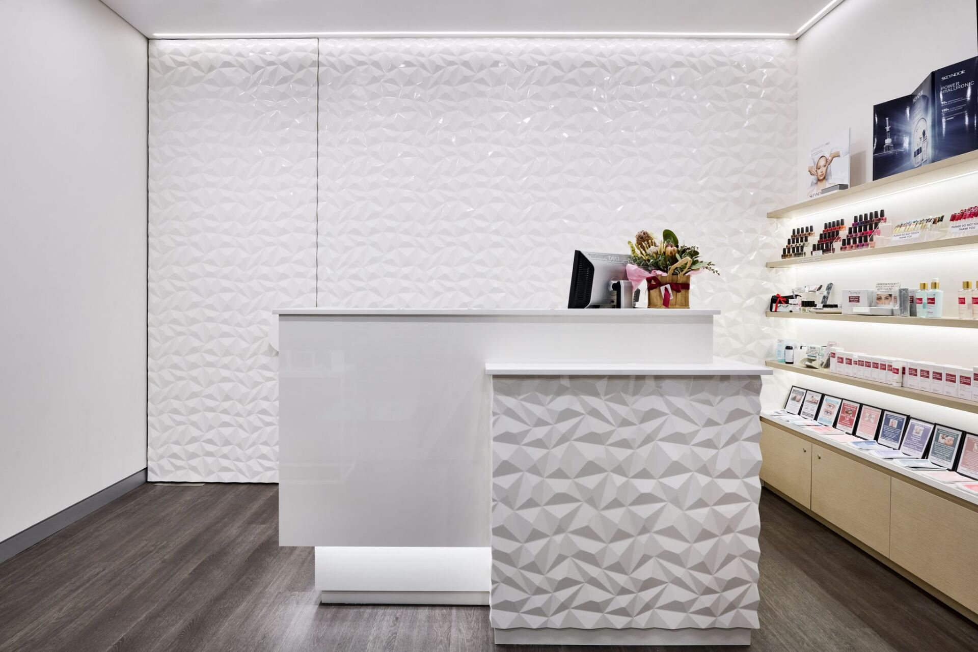 A bright, classy and clinical finish was achieved through the use of clean lines and 3-dimensional, high gloss panels.